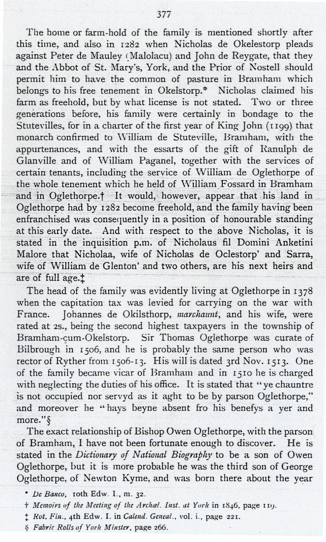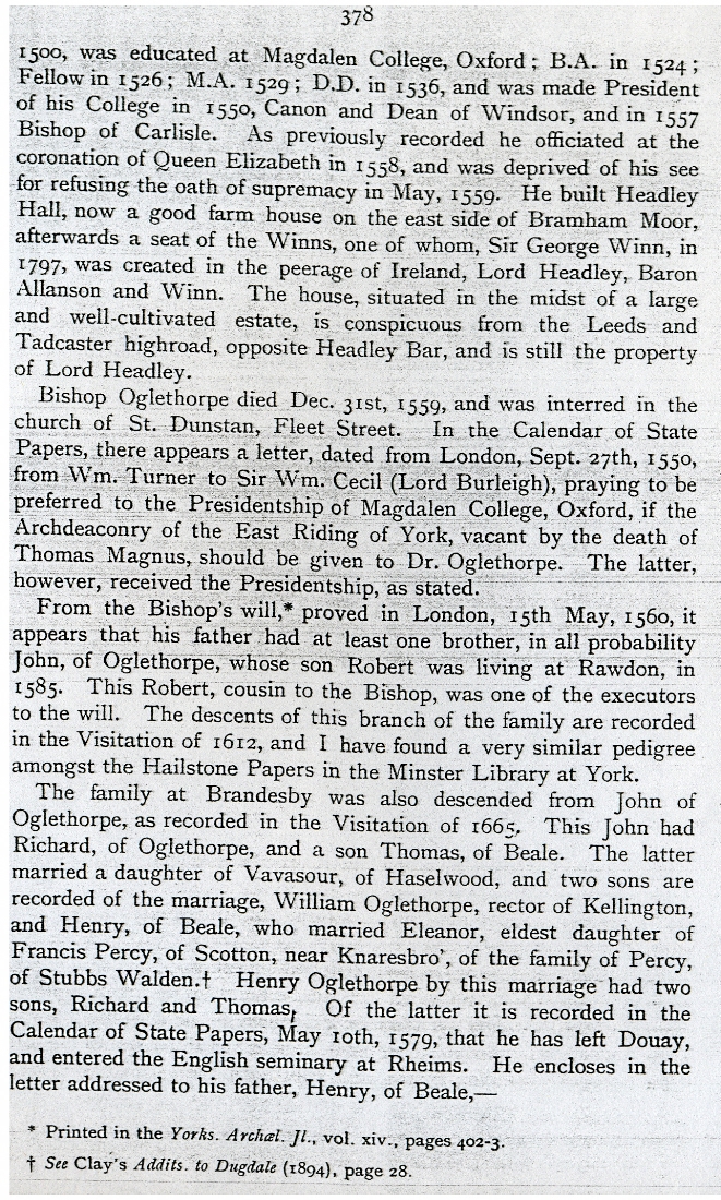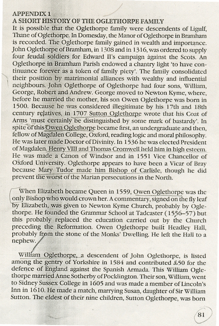 14. & 15. 'A Short History of the Oglethorpe Family' as recorded in Appendix 1 of a book of unknown title. |