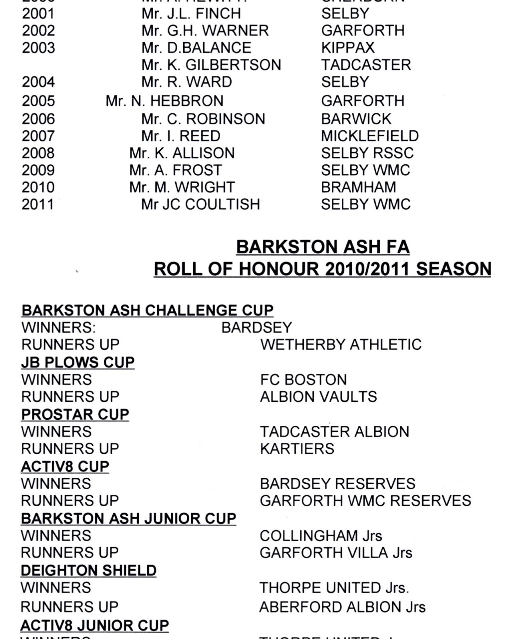 He came back to Bramham for a while, then occasionally returning to assist Tadcaster.
