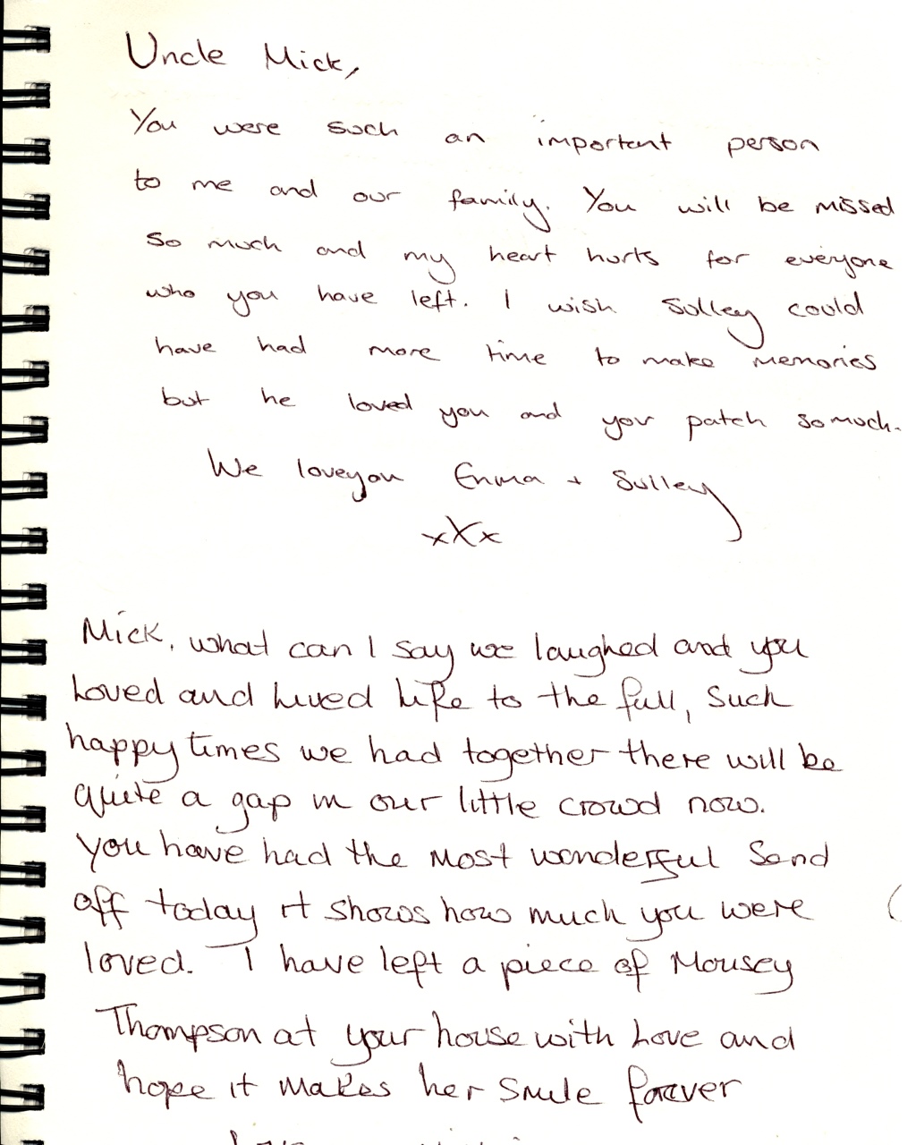 On the 21st December 2019 - Members of Mick's family, together with friends and various