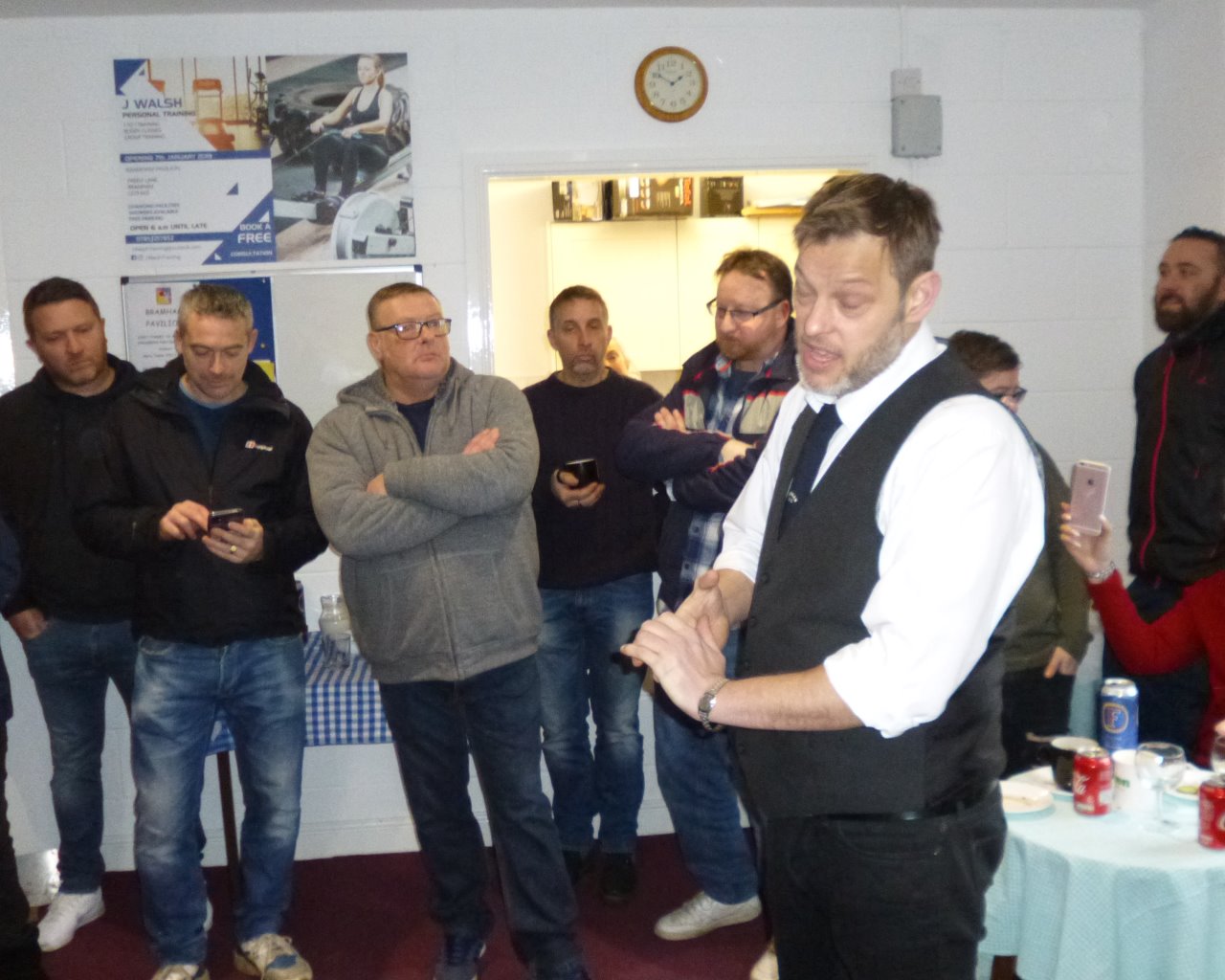 present and past football club players, gathered at Bramham Sports pavillion to mark the unveiling of the plaque.