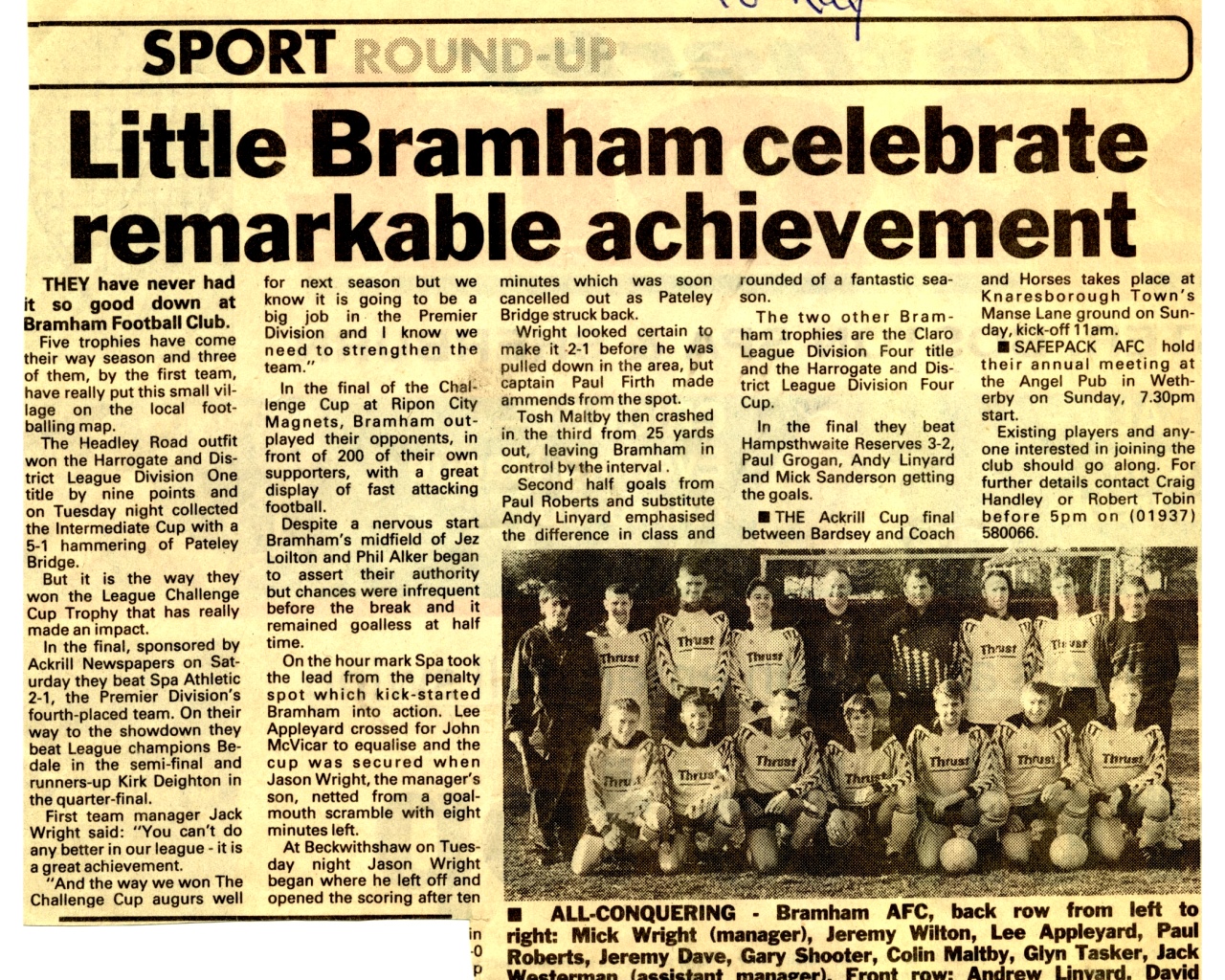 In 1974 Mick became involved with Bramham football team as manager.