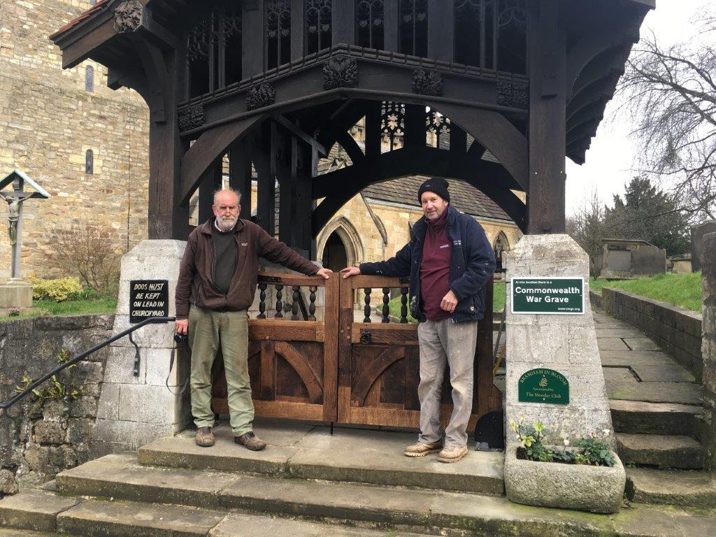 Nick and Jeremy Kendall with the newly repaired Lych gates - with grateful thanks to them both.