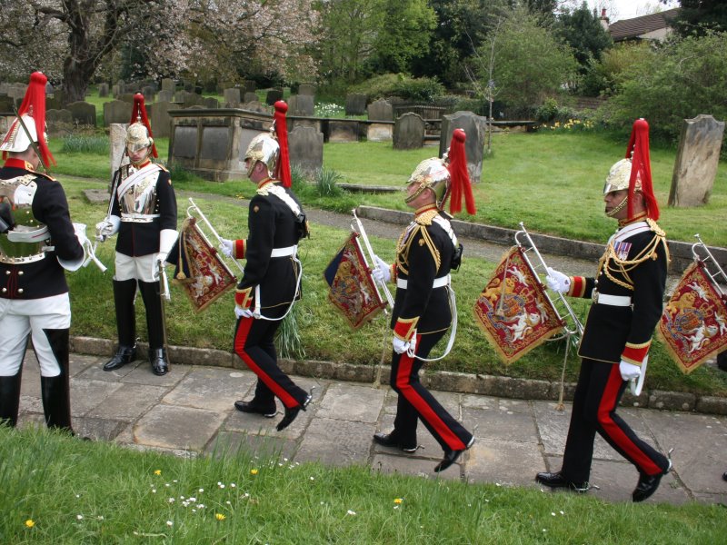 The State Trumpeters, who played the fanfares, were from The Band of the Blues & Royals , part of the Household Cavalry.