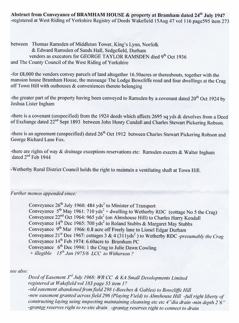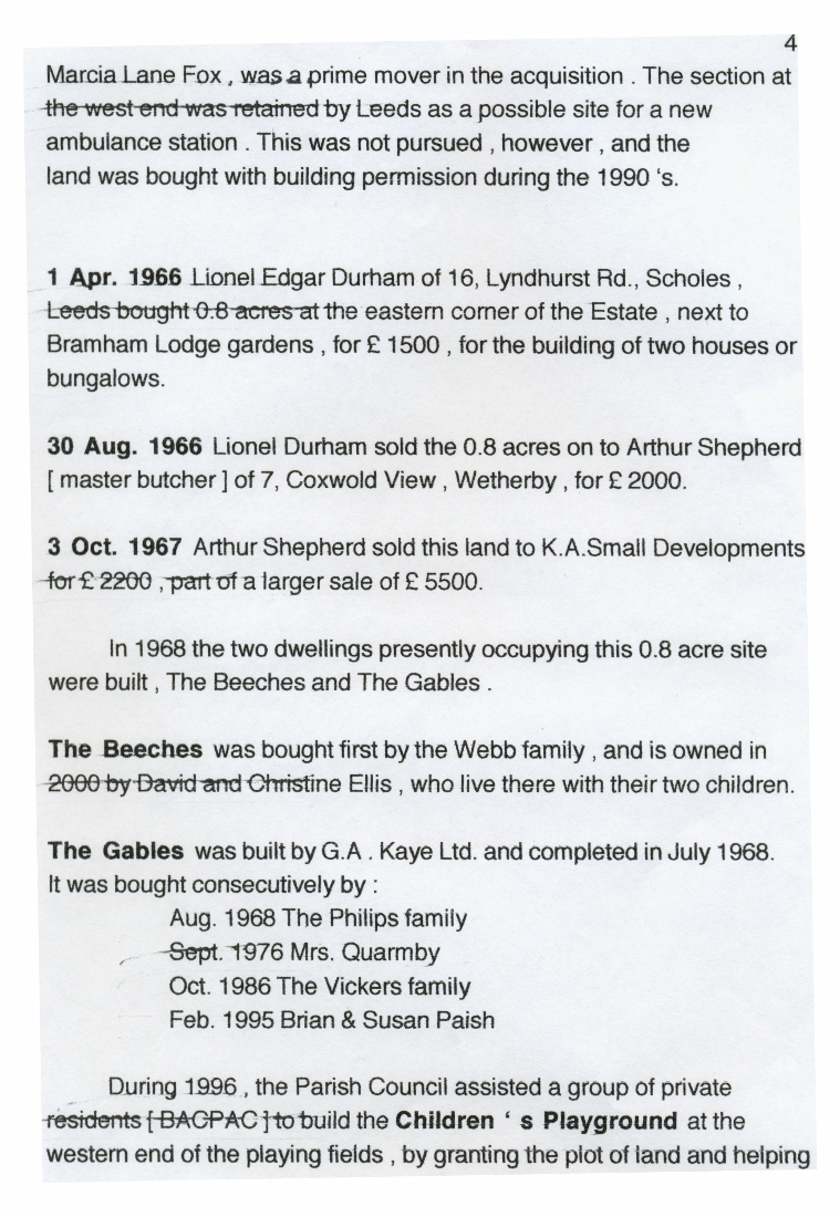 1. - 4. These four pages give details of the sizes of plots adjoining Freely Lane and transactions between owners from 1924 to 2000 together with information on how he land was used and the prices paid for the various constructions.
