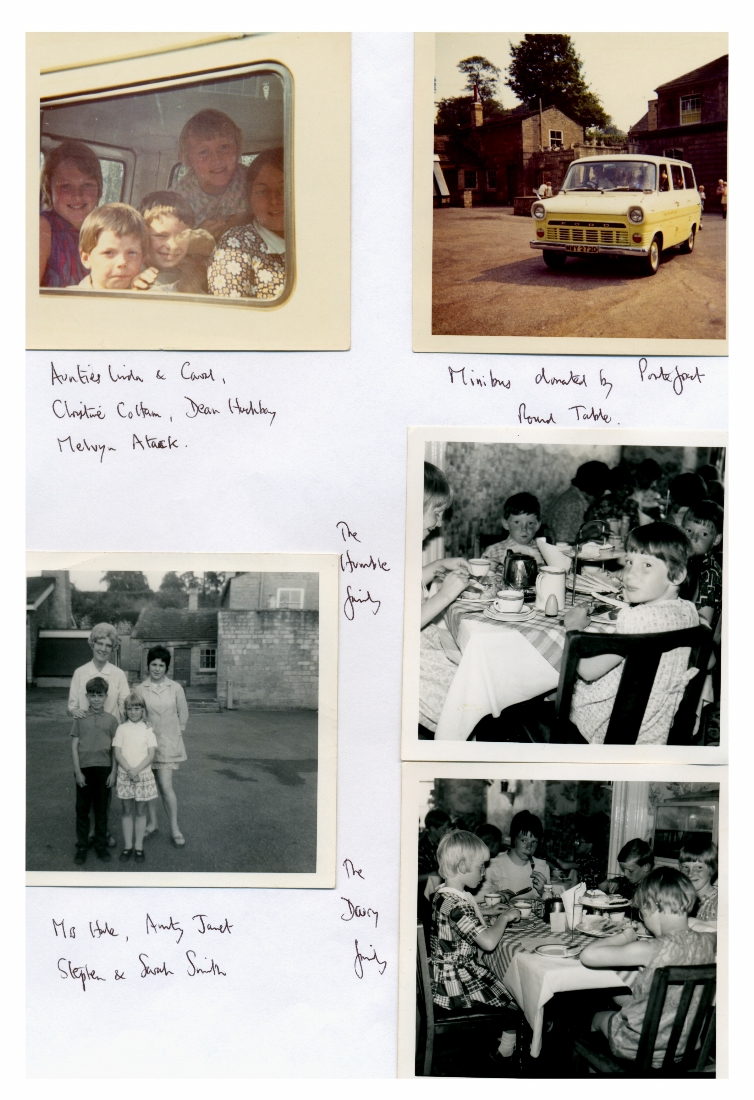 2. Five photos showing some of the children (including the Humble family and the Drury family) with the "Aunties" and a shot of the minibus donated to the Children's Home by Pontefract Round Table.