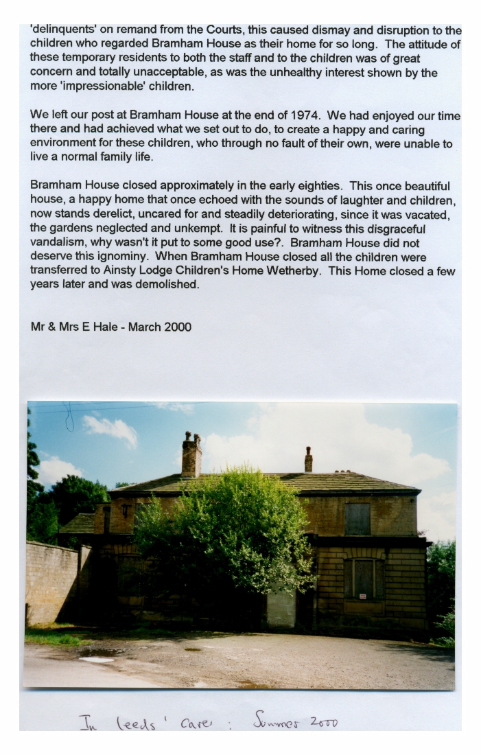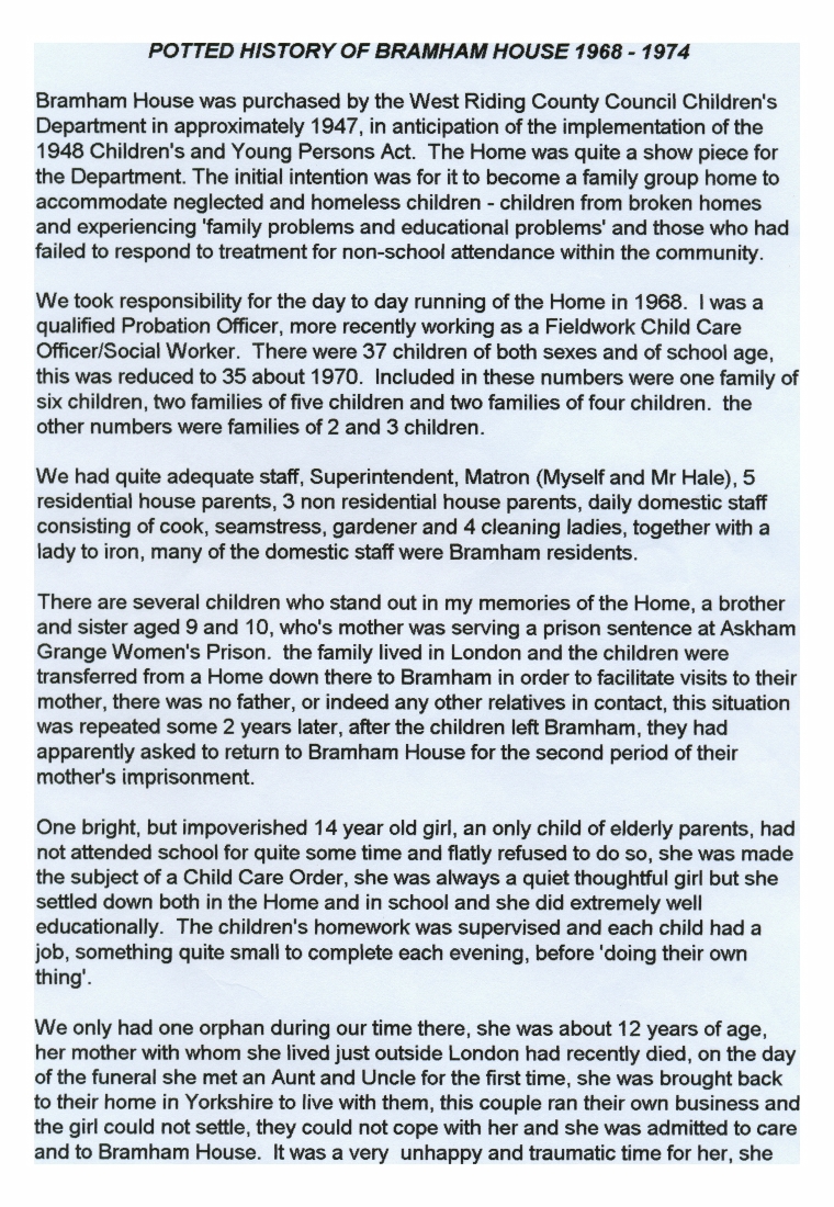 Description of 6-C The Children's Home & Potted History of Bramham House 1968-74