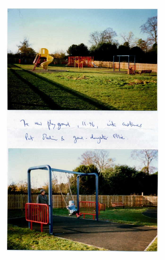 2. Another general shot of the playing area equipment in November 1996 together with one of Pat Machin supervising her granddaughter enjoying a swing.