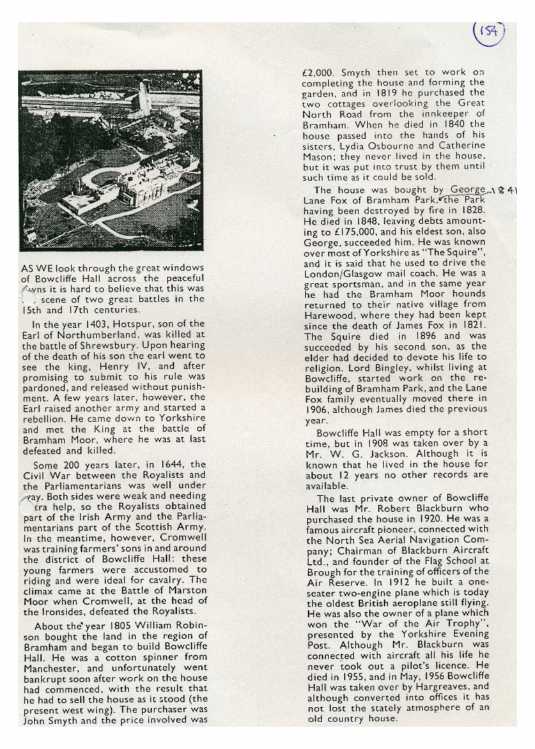 3. Another write up about the Hall and its occupants, covering much the same ground as items 1 & 2. An aerial photo showing the proximity of the A1 is included.