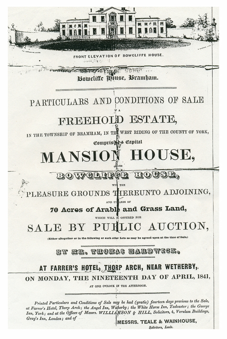 3. The bill of sale dated 19 April 1841 when the property was acquired by George Lane Fox (following the fire at Bramham Hall in 1828)