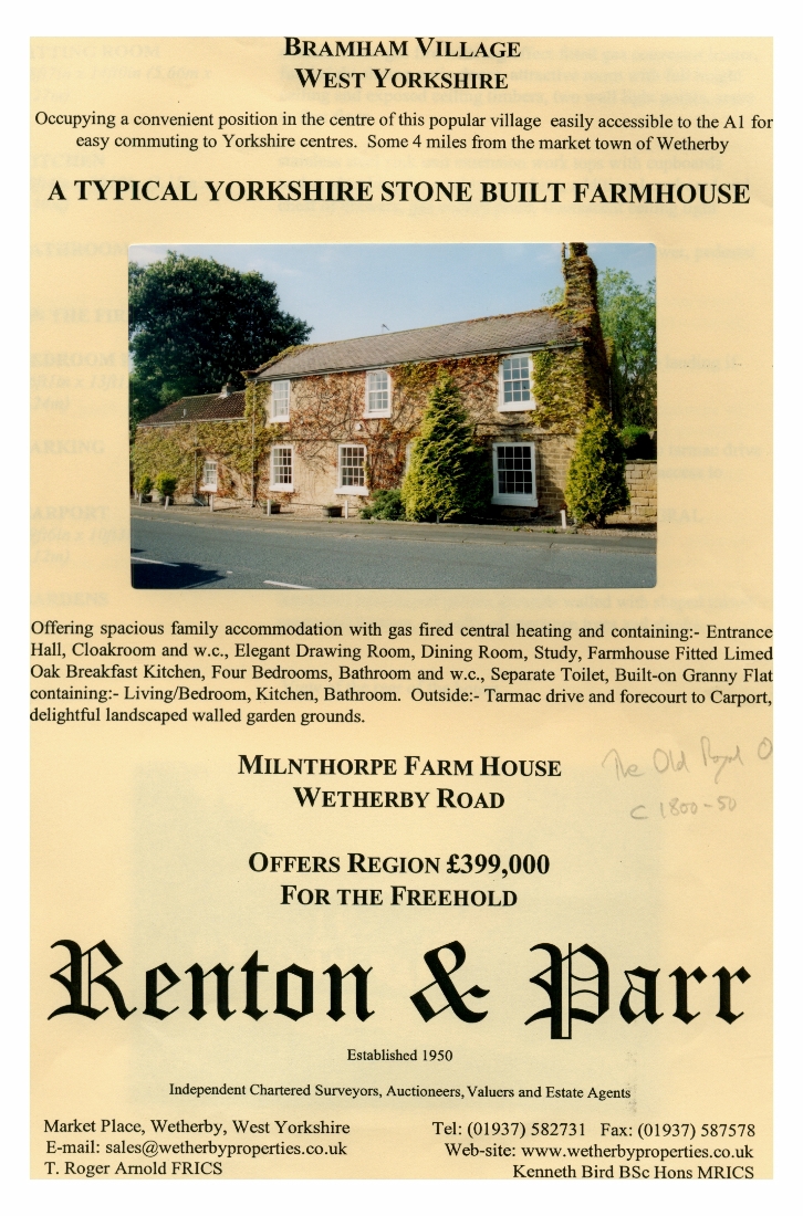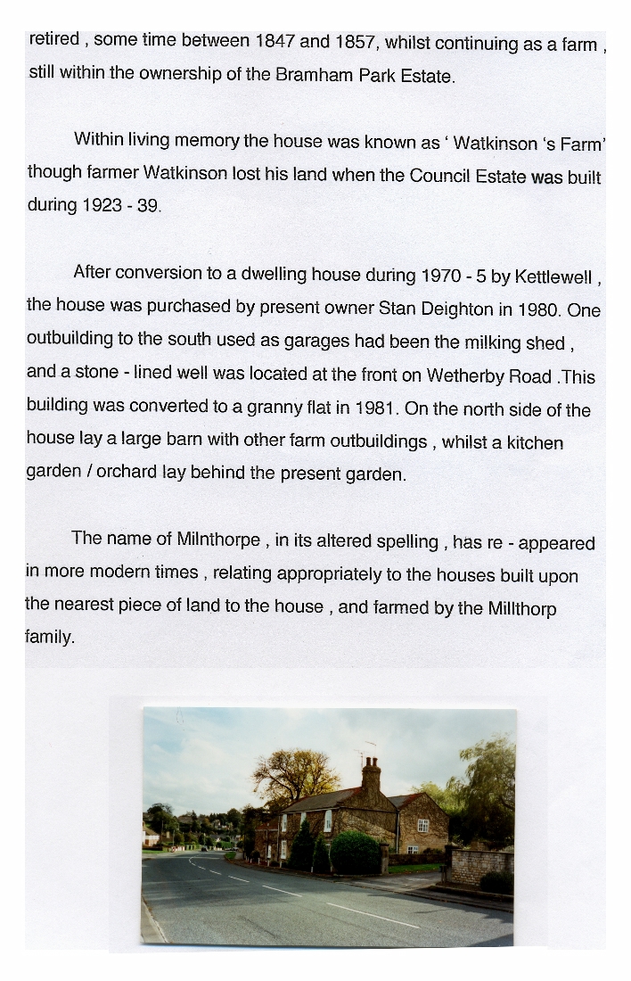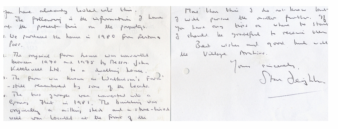 7. Part of a letter written by Stan Deighton, owner of Milnthorpe Farmhouse in 2000, giving details of recent history.