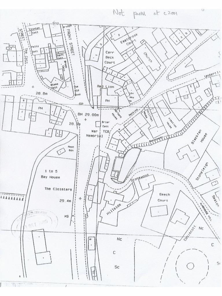 14. A plan of the village showing an outline of the site of the old almshouse plot to be developed.