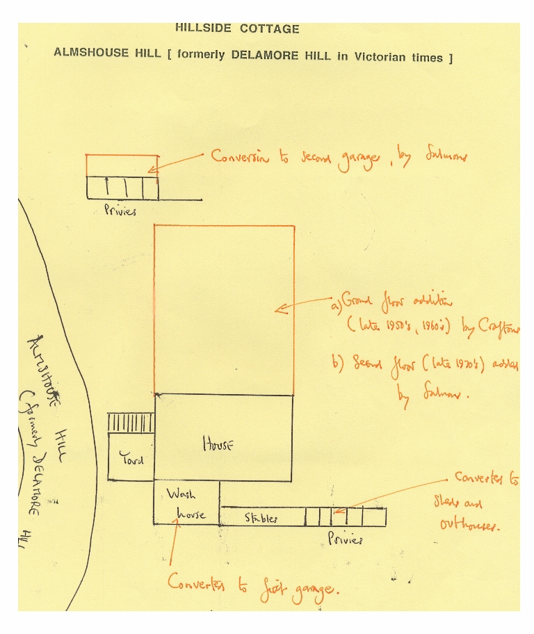 23. A simple plan of the original Hillside Cottage modified to show where and when alterations and extensions were added.