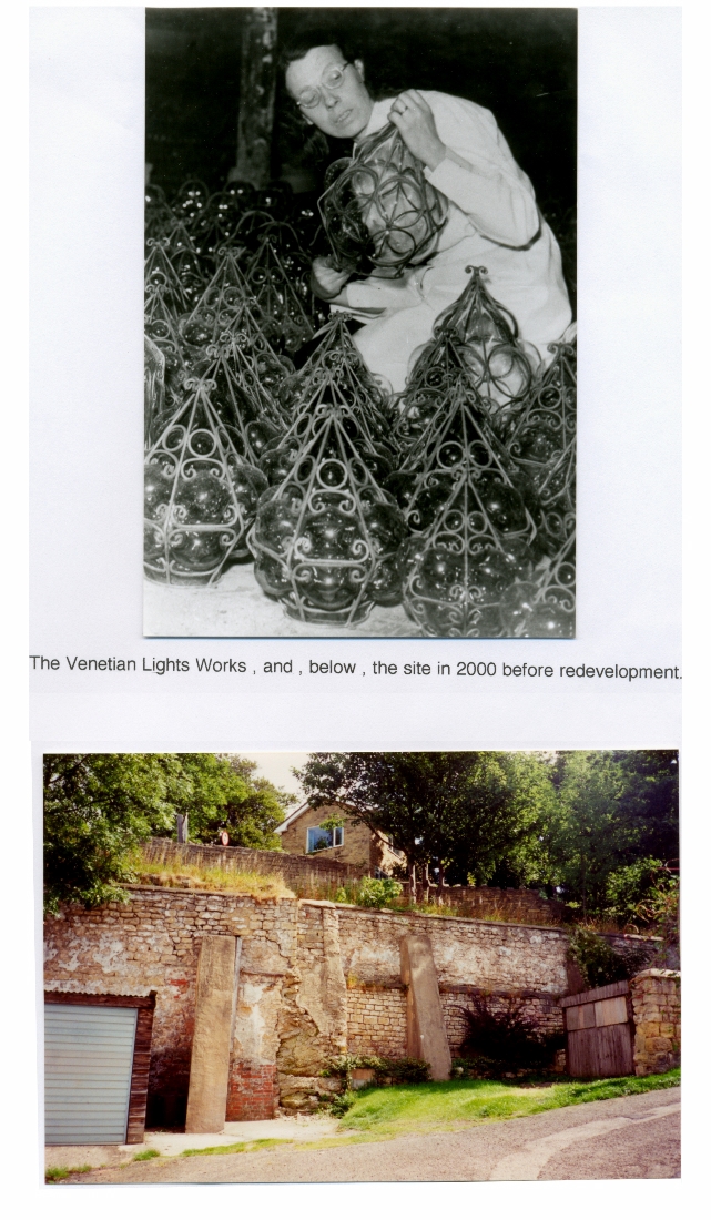 2. A photo of some of the lights when the Venetian Light Works was in operation plus a view of site of the almshouse in 2000 thirty three years after its demolition.
