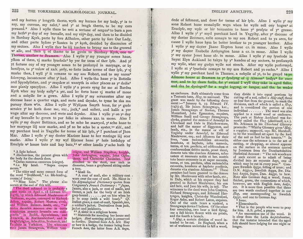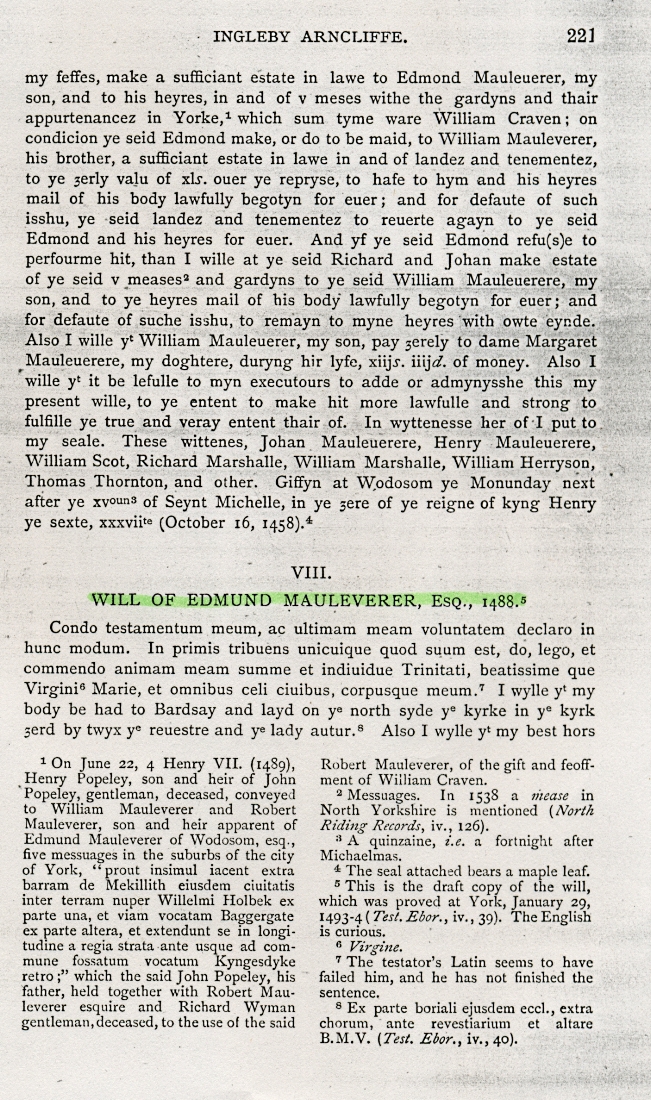 4. - 7. The Will of Edmund Mauleverer as published in The Yorkshire Archaeological Journal.