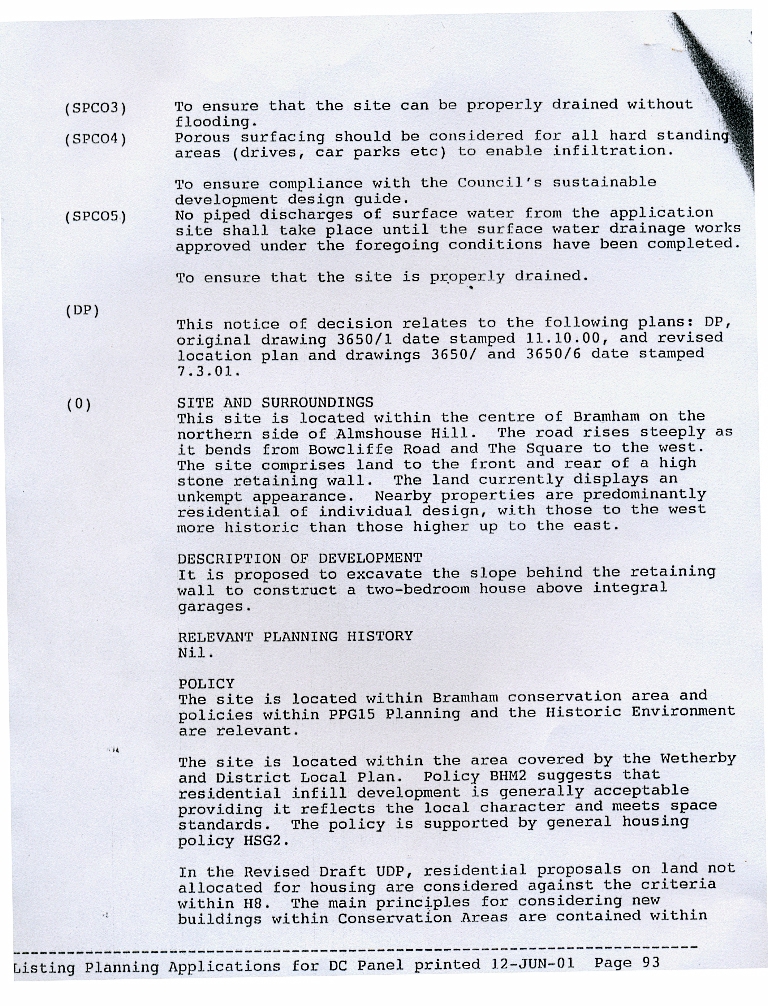 8. - 11. Agreement, with a list of conditions and comments, dated 11 October 2000, to a planning application for a 2 bedroom detached house to be built on the site.