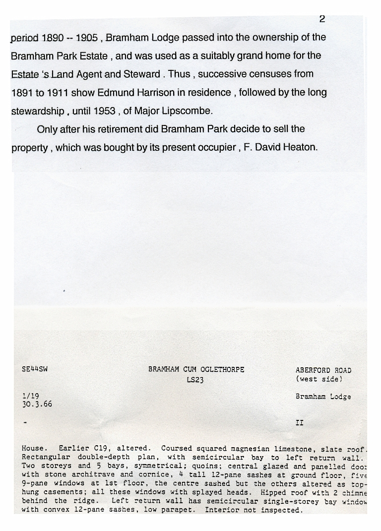 1. & 2. A short history of the Grade II listed building including a photograph (c. 2000) and an architectural description of the outside of the house dated 1966.