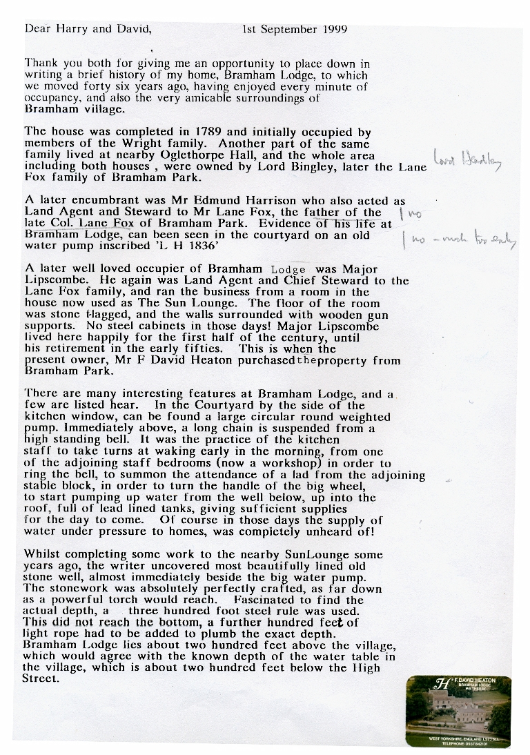 3. & 4. A write up by David Heaton, dated 1999. He bought the property in 1953 and gives interesting details of the construction of the buildings and their use.