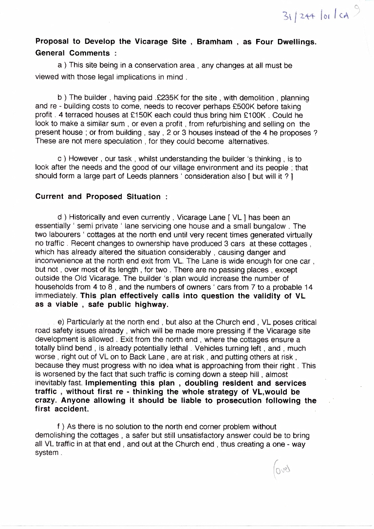 20. - 29. Correspondence in 2001 concerning the proposal to demolish the New vicarage and replace it by a terrace of four 3-storey flats.