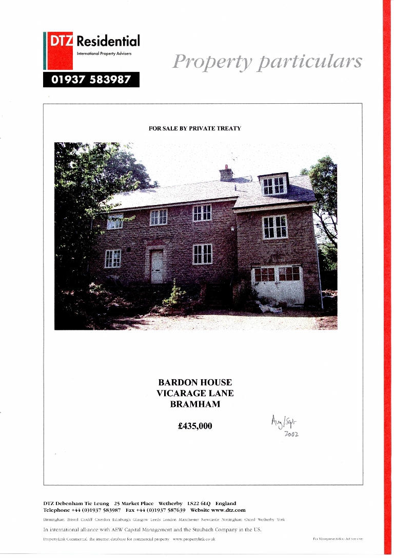 30. - 33. A sales brochure for Bardon House, formerly The New Vicarage, at an asking price of £435,000in 2002.