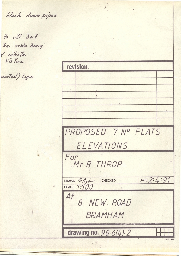 5. Part of the building proposal for the erection of the seven flats at the top of New Road/Low Way, dated 1991
